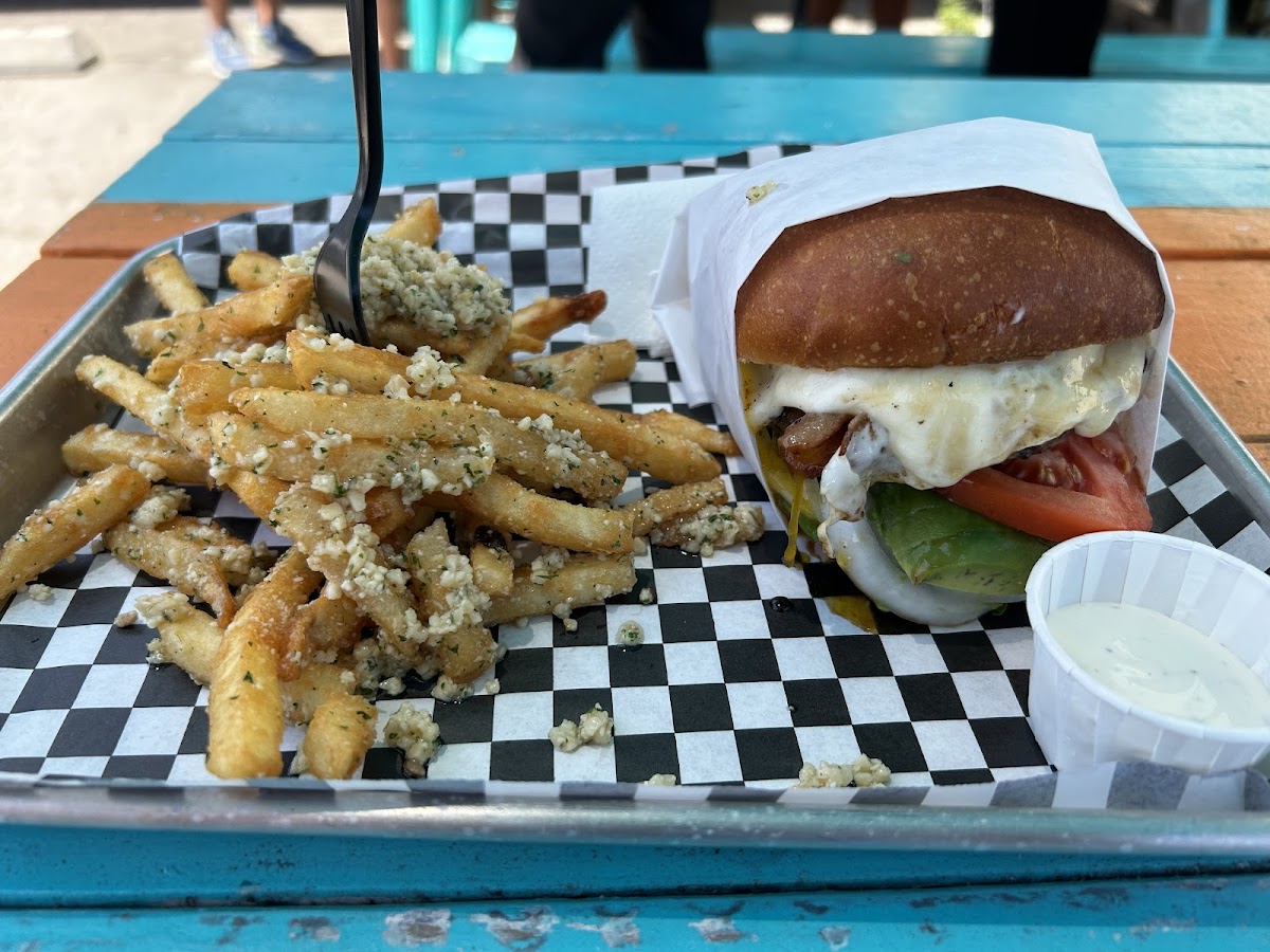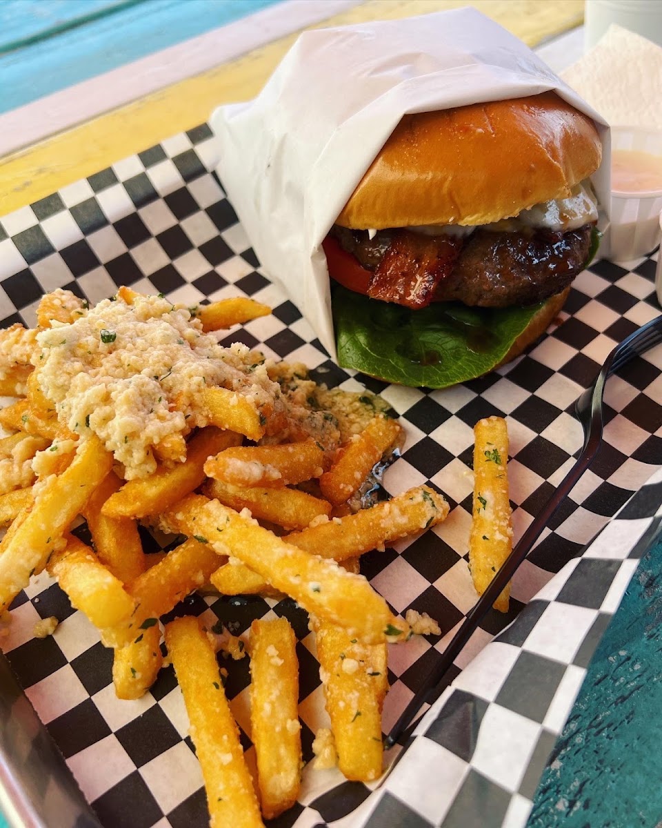The menu revolves around burgers made from wagyu beef with playful twists — toppings like grilled pineapple on the Aloha Burger or fried eggs on the Pocket Burger add character and heft. Breakfast here runs all day, with burritos and sandwiches packed with flavorful proteins and plenty of melted cheese, fitting for those who want a meal that lasts through a morning of surf or a casual afternoon stroll along the sand. Sweet potato fries and onion rings meanwhile offer a crunchy, savory side that pairs well with their house-made sauces and daily agua frescas, which rotate through bright, seasonal flavors like mango passionfruit.